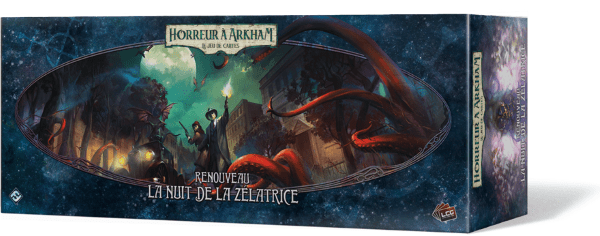 • Renouveau, La Nuit de la Zélatrice, une boite de rangement et de nouvelles cartes pour la campagne de la boite de base de Horreur à Arkham LCG chez Fantasy Flight Games France