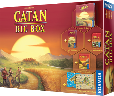 • Catan Big Box, une grosse boîte regroupant Catan, jeu de Base, l’extension 5-6 joueurs et 4 scénarios Kosmos