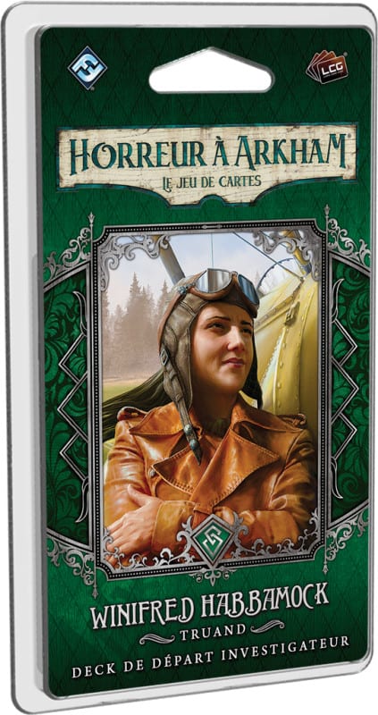 • 5 decks de départ d’investigateurs (Stella Clark, Jacqueline Fine, Winifred Habbamock, Harvey Walters et Nathaniel Cho) pour Horreur à Arkham JCE chez FFG France