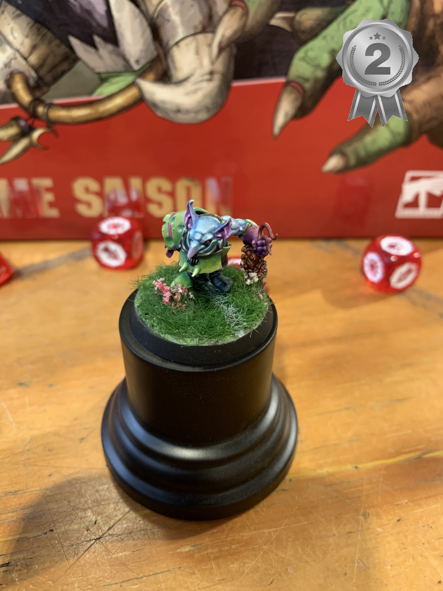 Le podium est ici aussi de grande qualité ! Tout en haut, Un Lanceur Humain par Alexandre Naudin; sur la 2ème marche, le Gobelin de Paul Nomann et pour compléter l’Orc Noir de Grégoire Roussel.