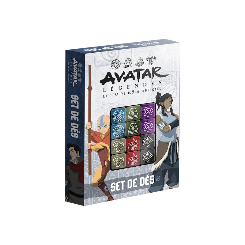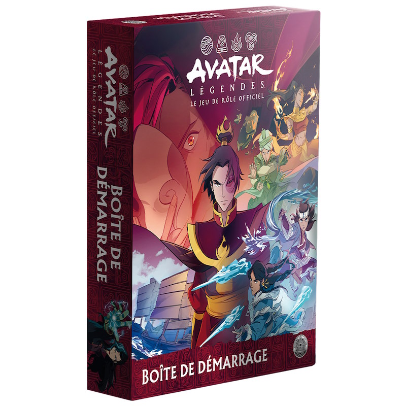 • Avatar Légendes, le jeu de rôles (Livre de Base, Boite de Démarrage, Ecran, supplément Wan Shi Tong, Set de Dés, Deck de Combat) chez Arkhane Asylum