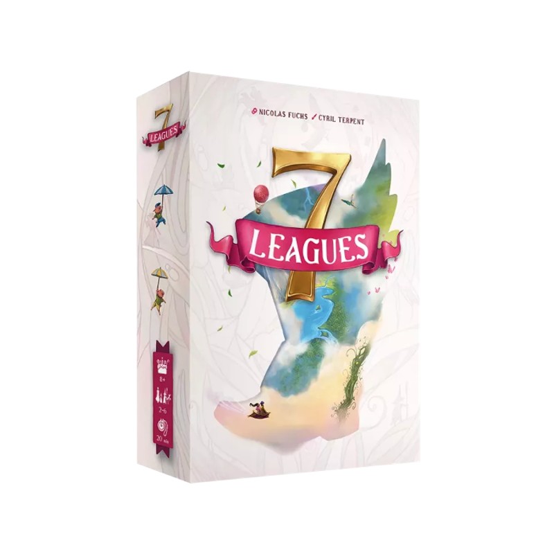 7 Leagues est un jeu de cartes stratégique et féerique pour 2 à 6 joueurs. Tour après tour, composez votre voyage en posant des cartes terrain devant vous et en repiochant selon la météo. Créez les meilleures synergies, activez des combos et formez des bottes pour marquer un maximum de points.