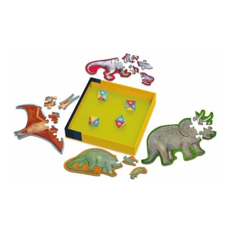 Dans Dinoroll, les joueurs ont 4 lancers pour composer le mot « DINO » avec des dés à huit faces et assembler un puzzle de dinosaure : Diplodocus, Ptérosaure, Tyrannosaure et Tricératops.