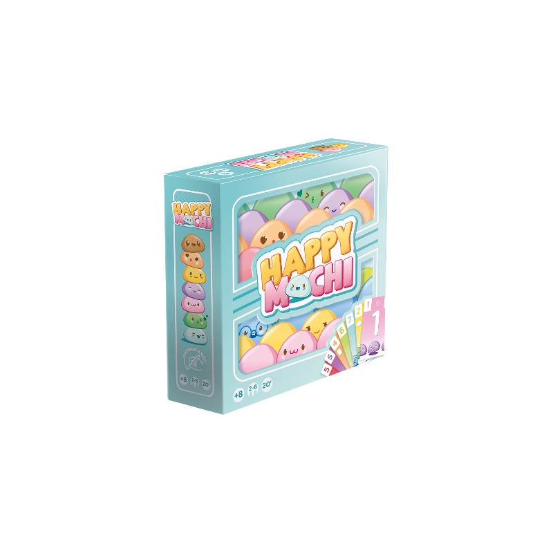 Dans Happy Mochi, vous recevez 7 cartes que vous ne pouvez pas classer ! À votre tour, piochez une carte ou jouez un duo. Pour ce faire, prenez deux cartes ADJACENTES dans votre main pour recouvrir le duo central, en respectant les contraintes de valeur (inférieure ou supérieure) et de couleur. Si vous jouez deux cartes de même valeur, c’est un Happy Mochi, ne tenez pas compte des contraintes ! Une fois un duo joué, appliquez ses effets éventuels : tourner la carte Sens, faire piocher, passer une carte à son voisin, ou mettre une carte en réserve.