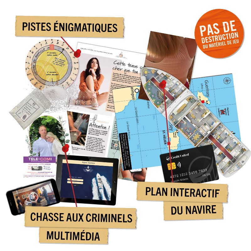 Devenez de véritables enquêteurs! Vous jouez tous ensemble, en équipe. Vous devez étudier le dossier, trouver des preuves, vérifier les alibis et parfois changer de perspectives. Utilisez tous les outils à votre disposition. Même les portables sont autorisés! Un cadavre, un tableau brûlé et de nombreuses intrigues vous attendent dans cette nouvelle enquête Hidden Games. Que s’est-il passé sur ce yacht privé pendant une traversée vers Londres? La police a besoin de votre aide ! Saurez-vous élucider cette affaire ?