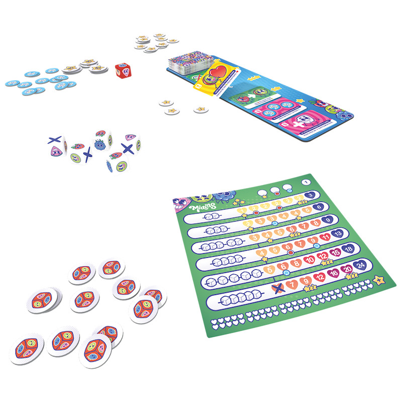 Miams est un jeu de dés survitaminé pour toute la famille dès 10 ans. Lancez vos dés, composez des combinaisons de fruits (paire, brelan, full, carré, suite ou miams), puis cochez les cases de votre feuille pour marquer des points et des bonus. Le but : avoir coché 50 cœurs avant vos adversaires et marquer le maximum de points ! Chaque lancer vous offre des choix : quelles brochettes de fruits avez-vous le plus de chance de générer ? Quels dés relancer ? Faut-il utiliser le dé rouge bonus ? A chaque tour, vous pourrez aussi acheter des cartes Miams aux effets variés pour booster votre stratégie : effets permanents, bonus immédiats ou fin de tour… Pimpez votre jeu des bons effets pour enchaîner les combos !