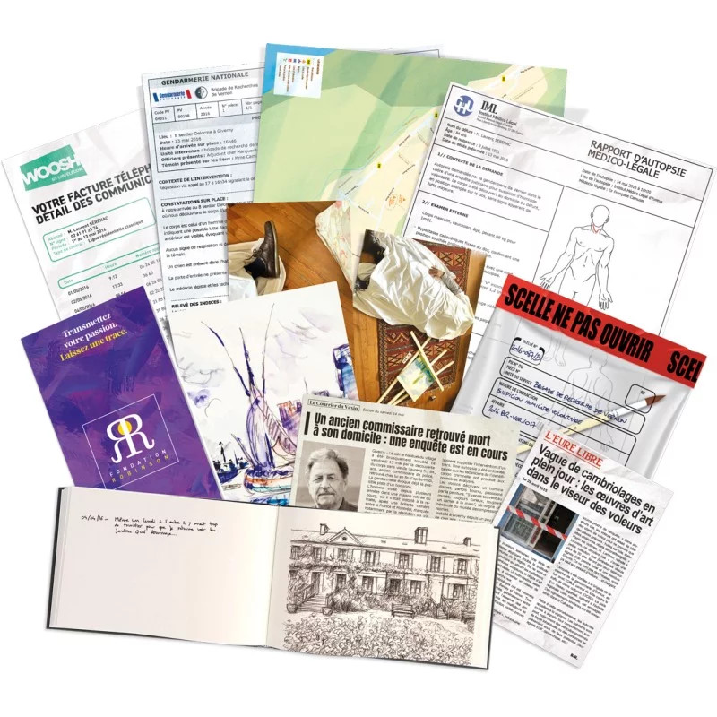 Un galeriste est retrouvé mort à Giverny, au cœur du village de Claude Monet. À vous de mener l’enquête à travers des documents riches et variés : lettres, rapports, coupures de presse, œuvres d’art… Plongez dans l’univers envoûtant de l’impressionnisme, explorez les secrets d’un village d’artistes et reconstituez la vérité. Un jeu d’enquête coopératif pour 1 à 5 joueurs, mêlant art, mystère et suspense.