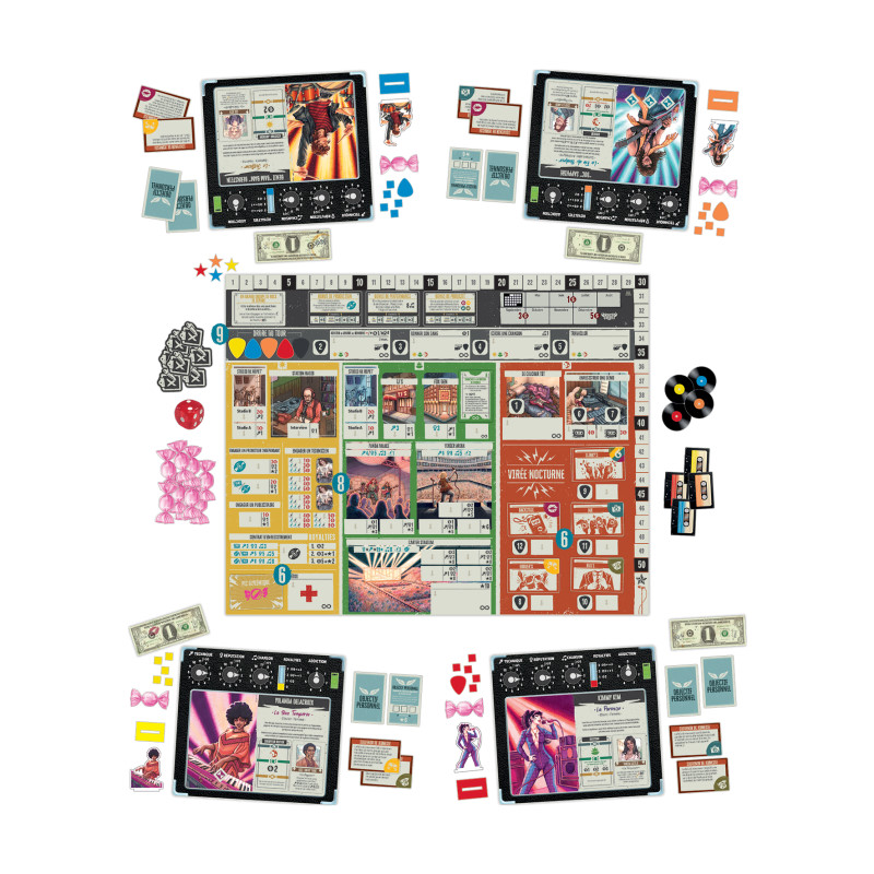 Rock Hard : 1977 se joue en neuf manches maximum, chacune représentant une journée typique d’un mois de 1977, d’avril à décembre. Vous remportez la partie en accumulant le plus de célébrité. Comment ? Améliorer sa réputation, sa notoriété et ses chansons ; obtenir des bonus de production, de performance et de publicité ; décrocher des contrats d’enregistrement et toucher des royalties ; donner des concerts ; et fréquenter les boîtes de nuit les plus branchées. Prêt à vivre comme une rock star ?