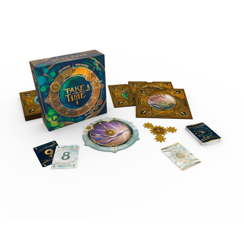 Prenez part à une aventure coopérative unique où chaque seconde compte. Dans Take Time, vous affrontez 40 horloges énigmatiques en équipe. Ouvrez l’une des enveloppes, retournez la première horloge, puis mélangez les 12 cartes Lune et les 12 cartes Soleil (numérotées de même manière) avant de les distribuer entre les joueurs. Attention, personne ne regarde ses cartes pour l’instant.