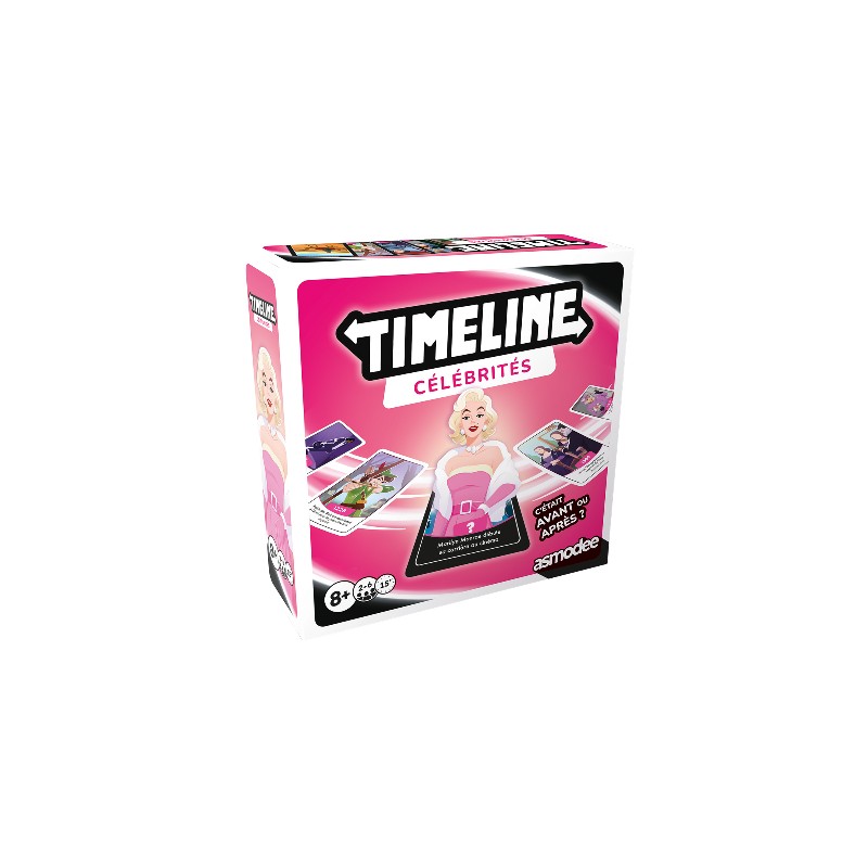Dans Timeline : Célébrités, vous devrez placer vos cartes représentant des personnages célèbres dans l’ordre chronologique. Mais saurez-vous dire si Elvis a chanté avant ou après Marilyn ? Et Lebron James, est-il devenu champion NBA avant ou après Lady Gaga ? Pas besoin d’être historien : un peu de logique, quelques repères et le tour est joué !